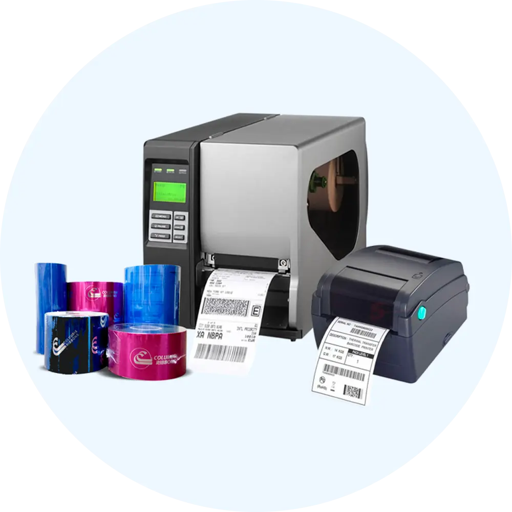 Venta de impresoras térmicas de escritorio, para bajo volúmen e industrial para alta demanda, instalación, capacitación y mantenimiento. Venta de cintas ribbon en cera y resina.